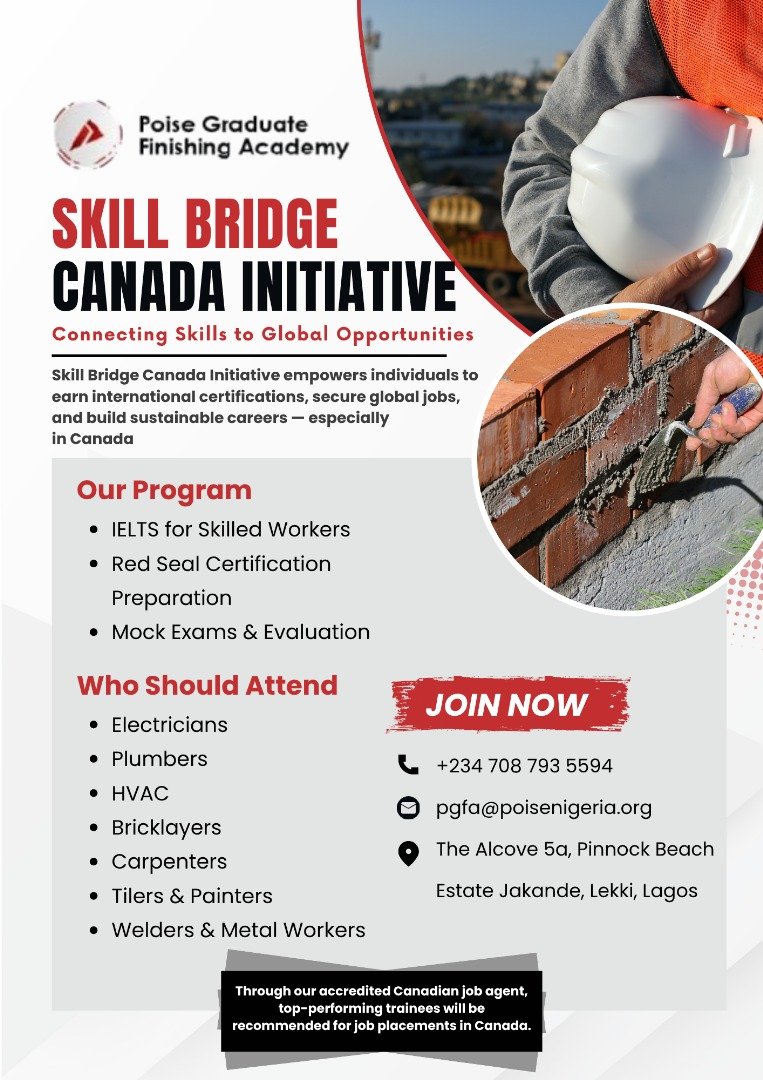 The PGFA Skill Bridge Canada Initiative is a specialized training program designed to empower artisans, technicians, and tradespeople from underserved communities. Our mission is simple: help skilled workers gain international certifications and secure employment opportunities in Canada.
